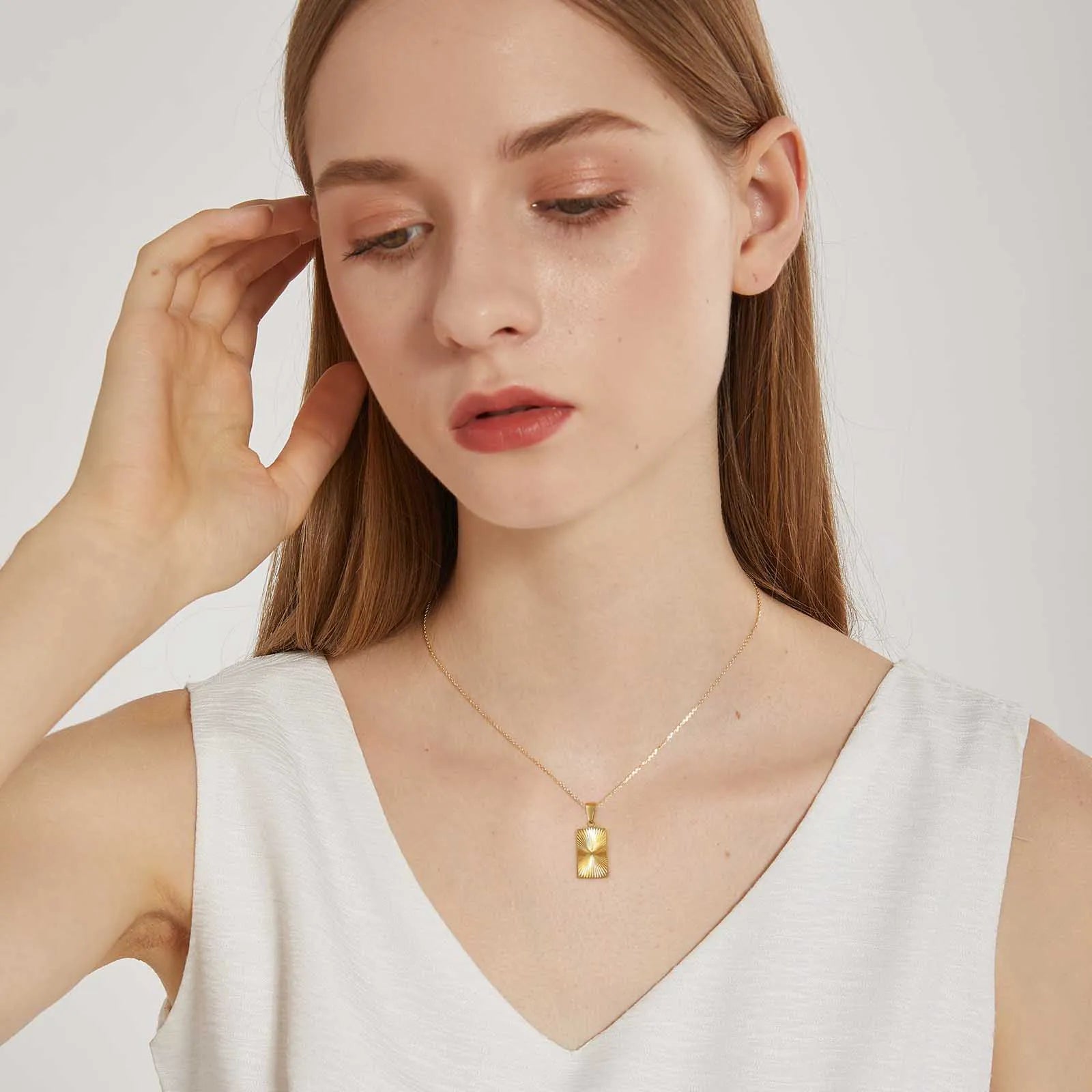 Gold-Plated Sunburst Pendant Necklace – Embossed Rectangle Charm for Men